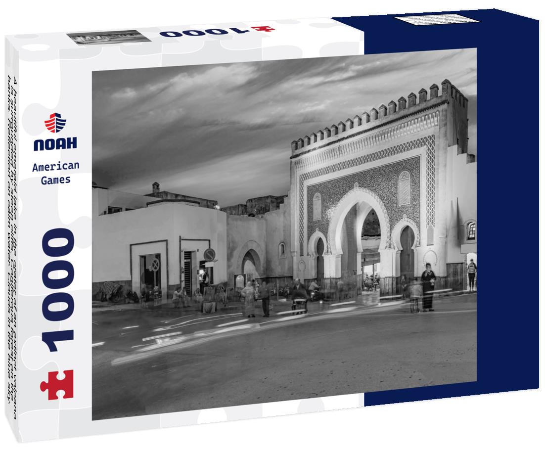 Noah Jigsaw Puzzle A beautiful emerald lake in the crater of an extinct volcano is surrounded by steep cliffs. Coniferous forest on the banks. Reflection on calm water. Clouds in the blue sky. Tritriva lake. Madagascar in black white 1000 pieces