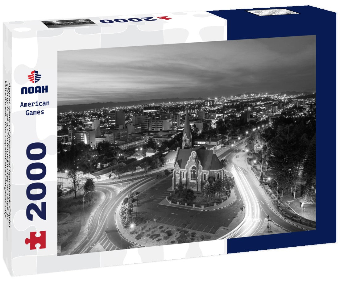 Noah Jigsaw Puzzle Aerial view of historical landmark Christ Church aka Christuskirche at dusk in Windhoek, the capital and largest city of Namibia in black white 2000 pieces