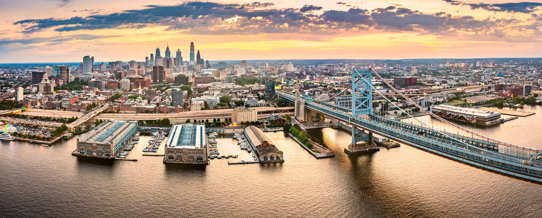 Noah Jigsaw Puzzle Aerial view with Ben Franklin Bridge and Philadelphia skyline at sunset. Ben Franklin Bridge is a suspension bridge between Philadelphia and Camden, NJ panorama 2000 pieces