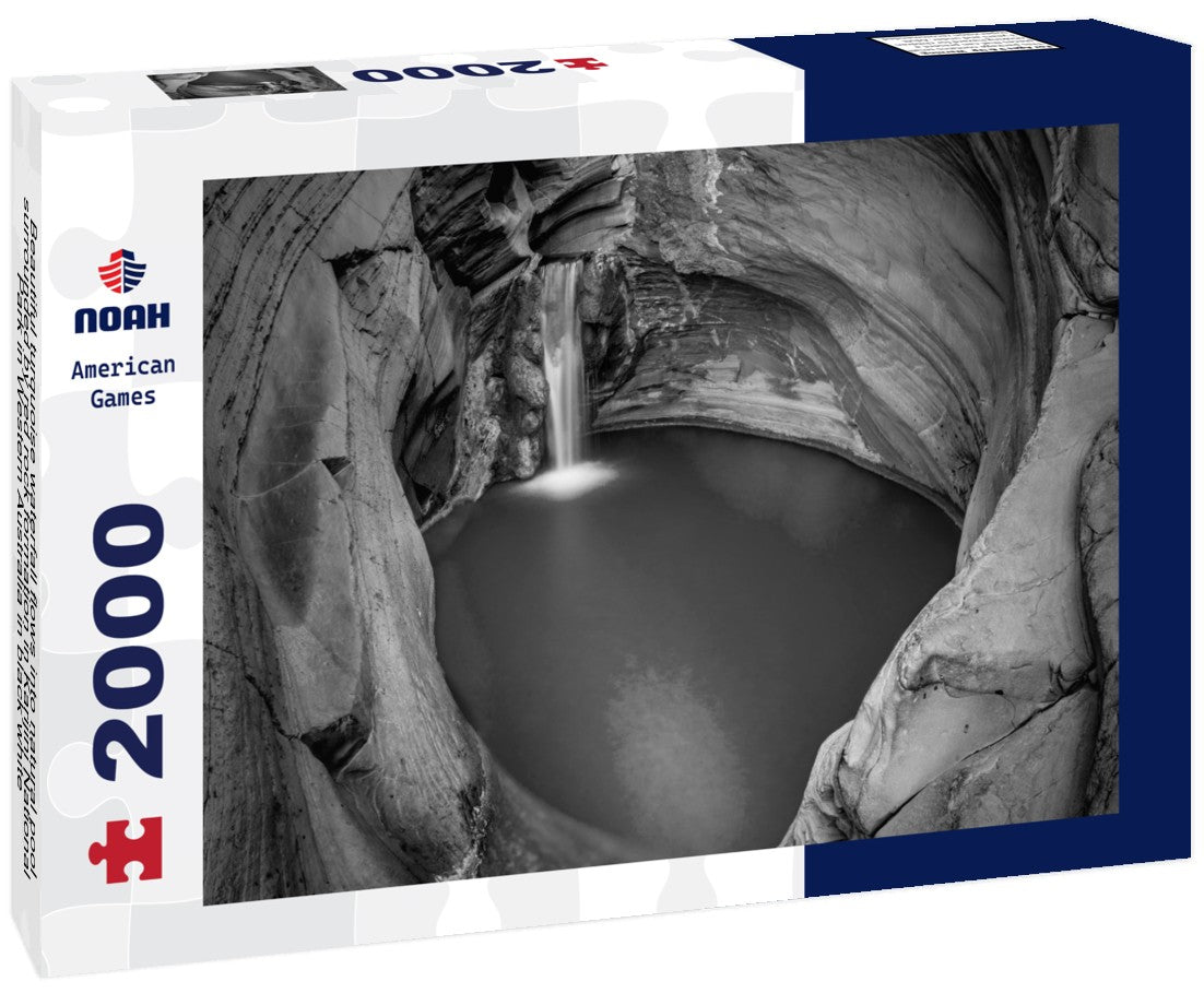 Noah Jigsaw Puzzle Beautiful turquoise waterfall flows into natural pool surrounded by red rock formation in Karijini National Park in Western Australia in black white 2000 pieces