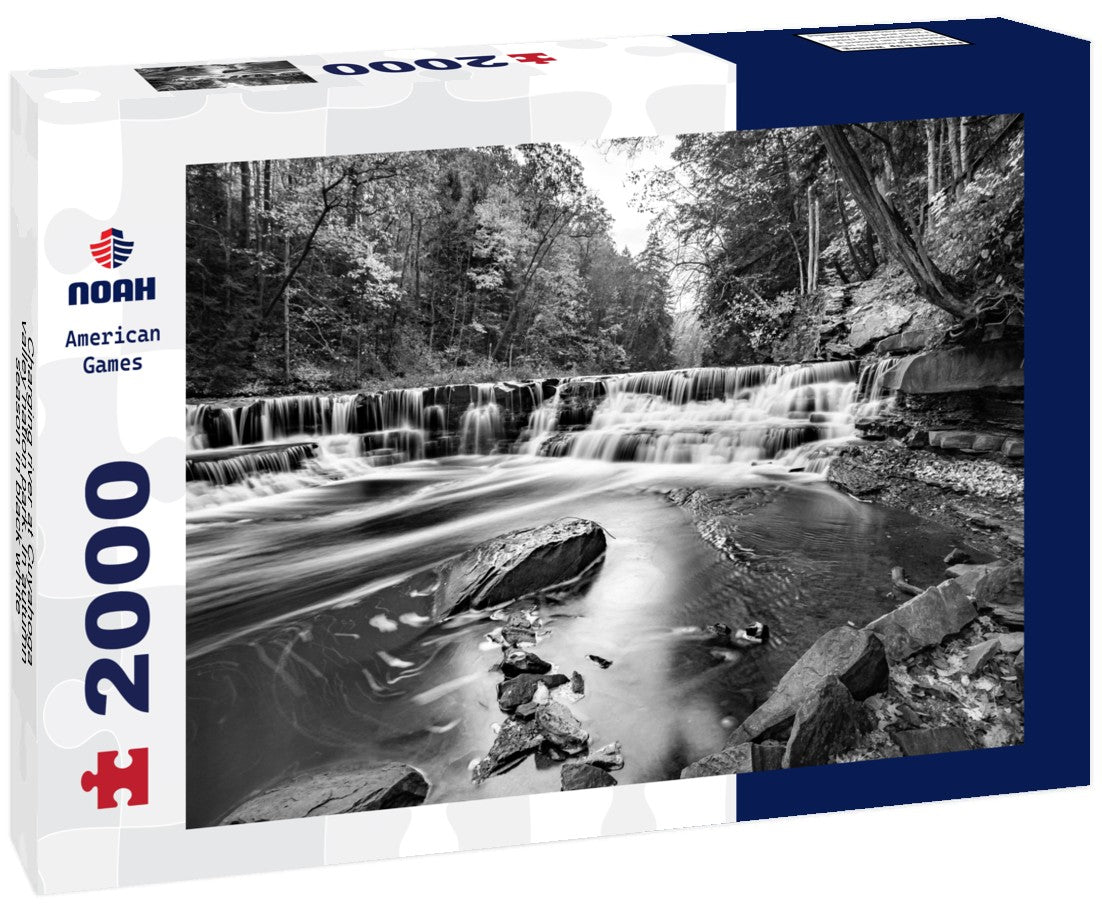 Noah Jigsaw Puzzle Charging river at Cuyahoga valley nation park. In autumn season in black white 2000 pieces