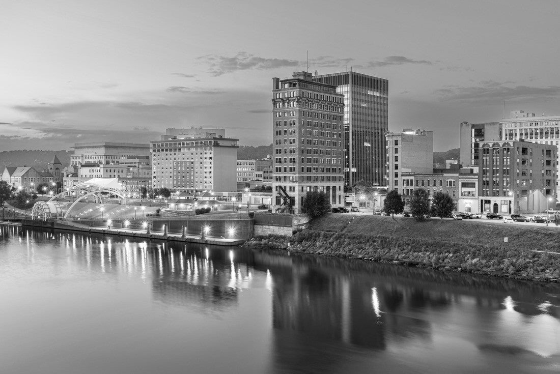 Noah Jigsaw Puzzle Charleston, West Virginia, USA skyline on the Kanawha River at dusk in black white 2000 pieces