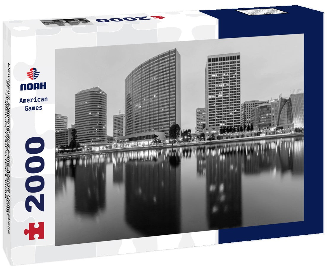 Noah Jigsaw Puzzle Downtown Oakland and Lake Merritt Reflections at Twilight. Oakland, Alameda County, California, USA in black white 2000 pieces