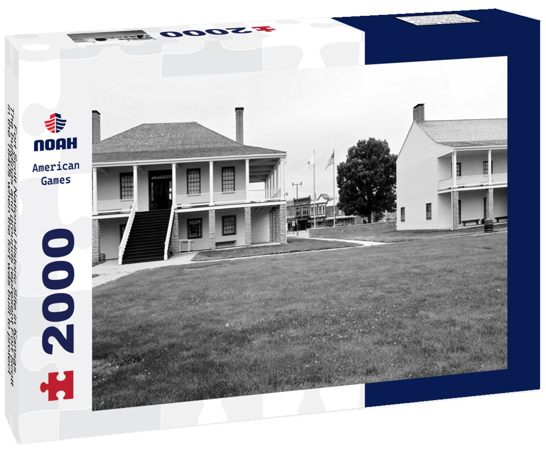Noah Jigsaw Puzzle Fort Scott National Historic Site in Kansas. The buildings and grounds represent Fort Scott in the 1840s when the fort was built to protect the permanent Indian frontier in black white 2000 pieces