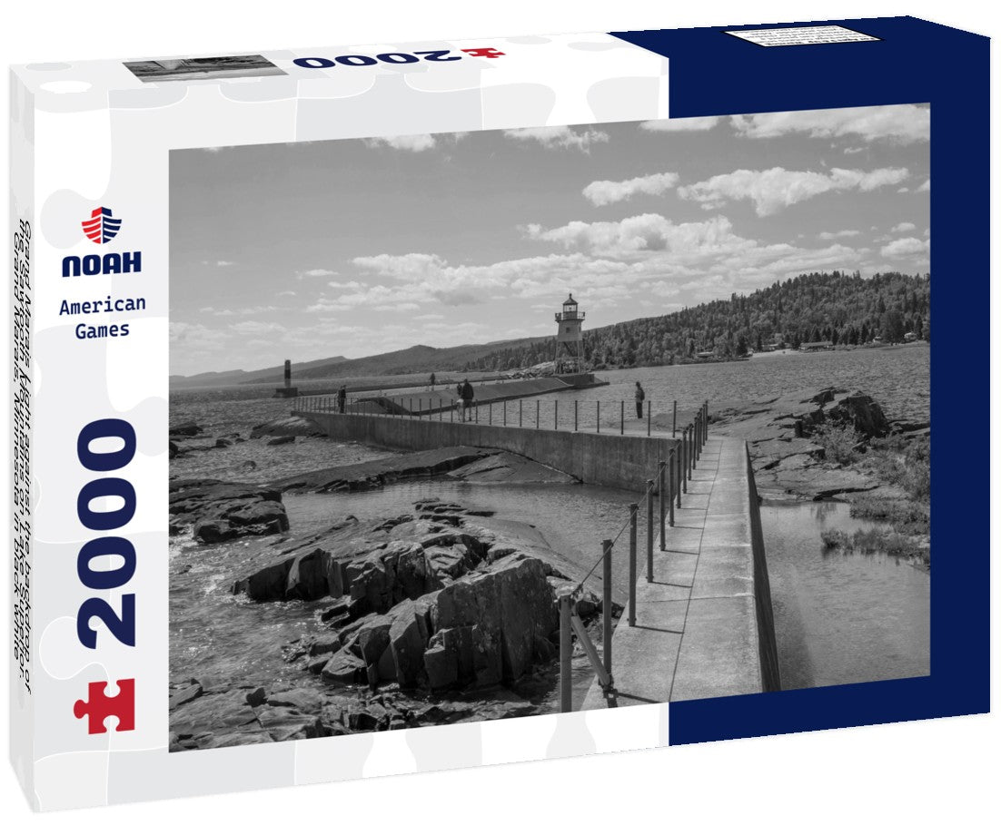 Noah Jigsaw Puzzle Grand Marais Light against the backdrop of the Sawtooth Mountains on Lake Superior. Grand Marais, Minnesota in black white 2000 pieces