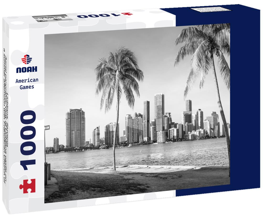 Noah Jigsaw Puzzle Ljubljana, Slovenia - Aerial panoramic view of Ljubljana castle on a summer afternoon with Franciscan Church of the Annunciation, Ljubljana Cathedral and skyline of the capital of Slovenia at sunset in black white 1000 pieces
