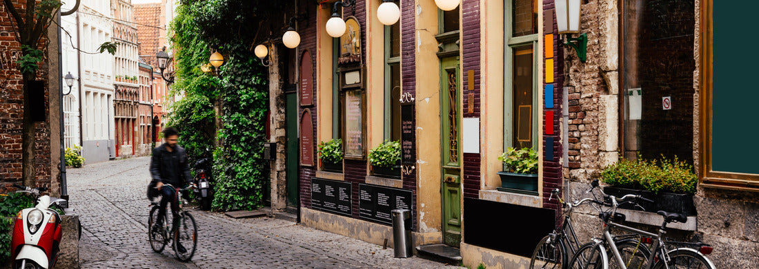 Noah Jigsaw Puzzle Old narrow street in Gent (Gent), Belgium. Architecture and landmark of Gent. Cozy cityscape of Gent panorama 1000 pieces