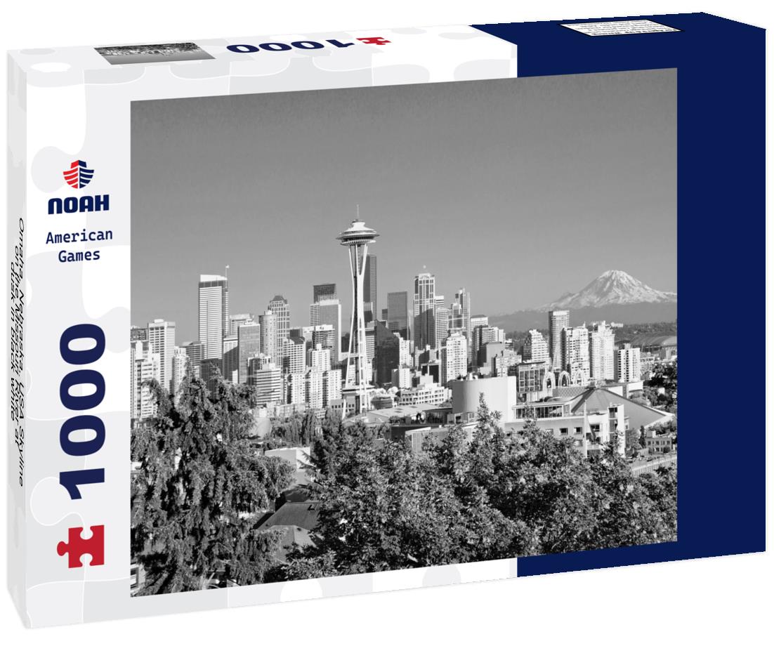 Noah Jigsaw Puzzle Omaha, Nebraska, USA Skyline on the Missouri River at dusk in black white 1000 pieces