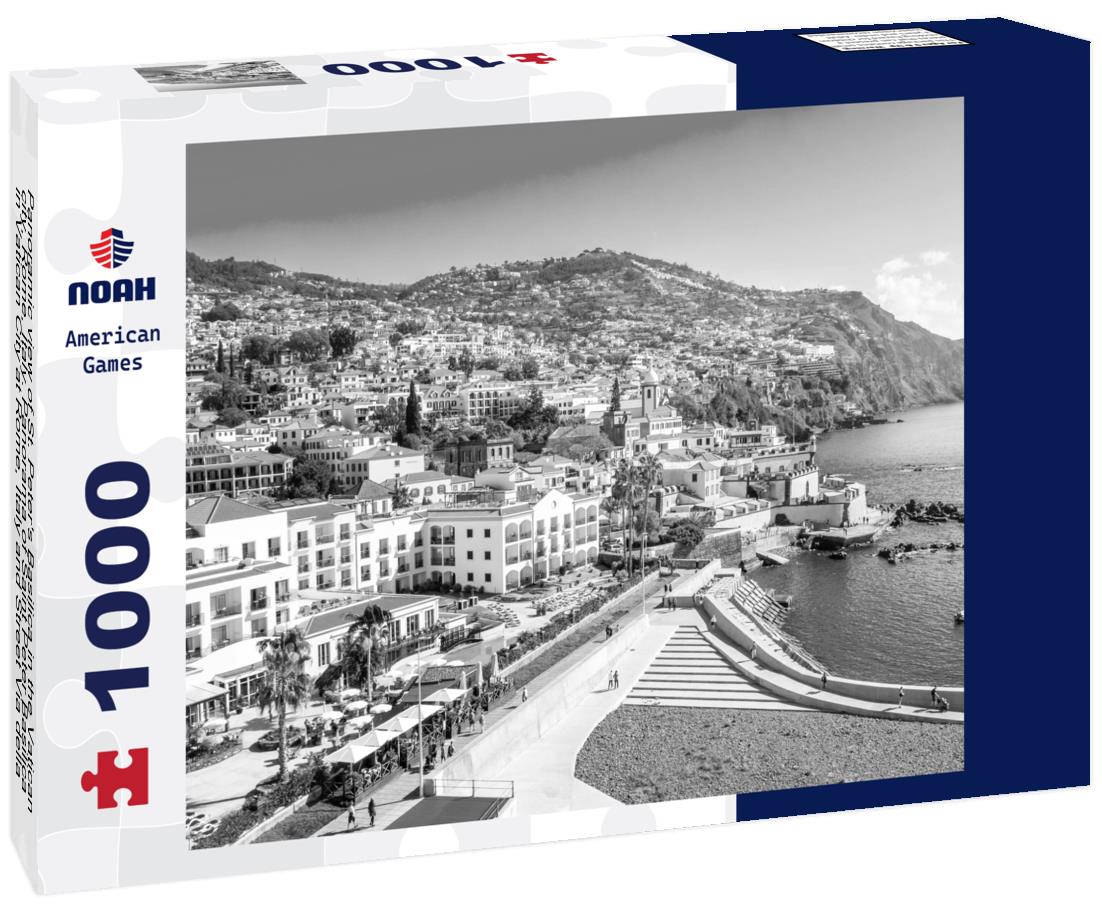 Noah Jigsaw Puzzle Panoramic view of St. Peter's Basilica in the Vatican city, Rome, Italy. Panorama of Saint Peter Basilica in Vatican City at Rome, Italy and Street Via della Conciliazione at sunset sky in black white 1000 pieces