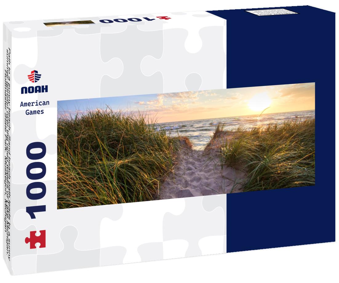 Noah Jigsaw Puzzle Path to a sunny beach. Sand beach path leads to a sunny summer horizon over the open waters of Lake Michigan. Hoffmaster State Park. Muskegon, Michigan panorama 1000 pieces