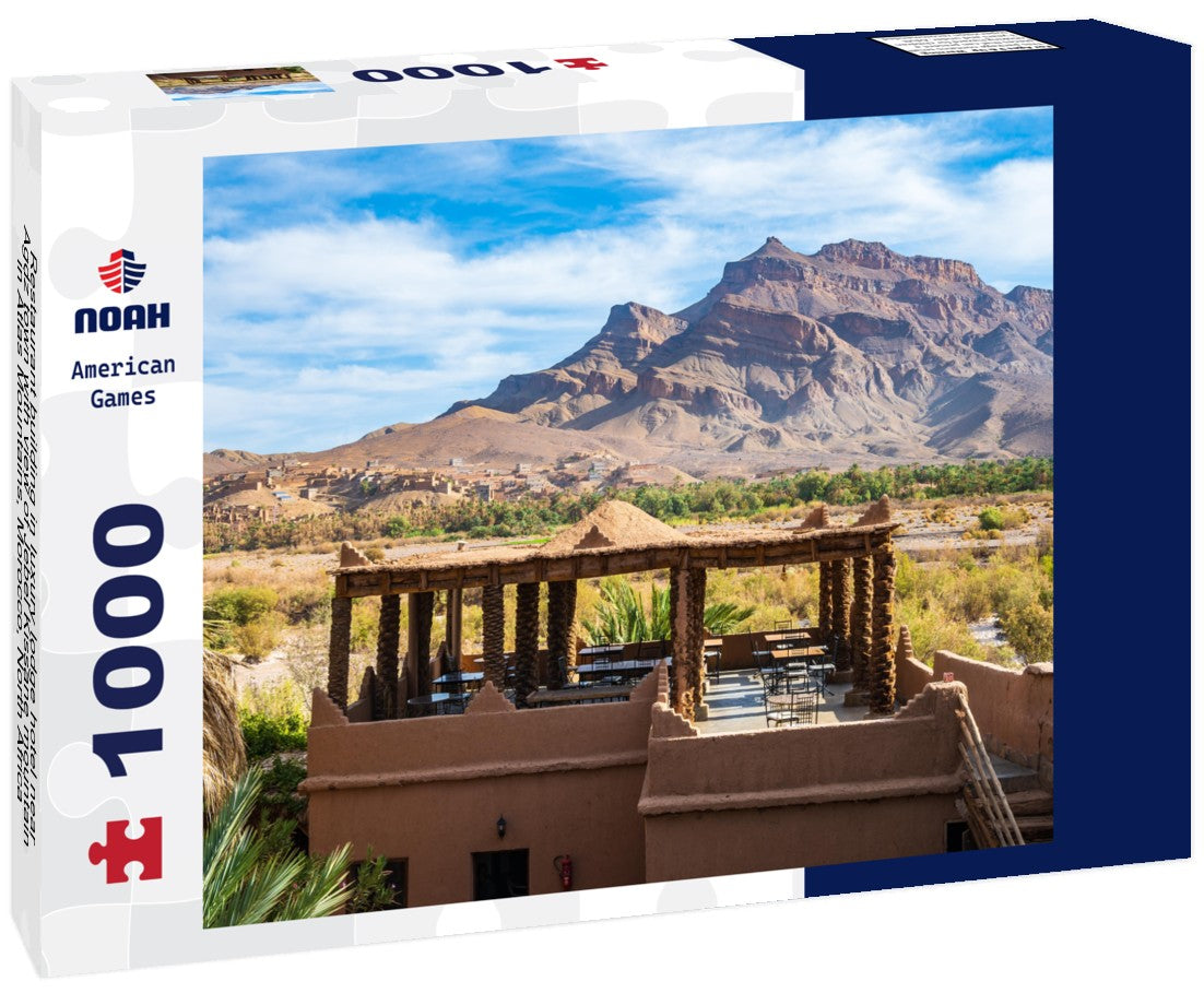 Noah Jigsaw Puzzle Restaurant building in luxury lodge hotel near Agdz town with view of Jebel Kissane mountain in Atlas Mountains, Morocco, North Africa 1000 pieces