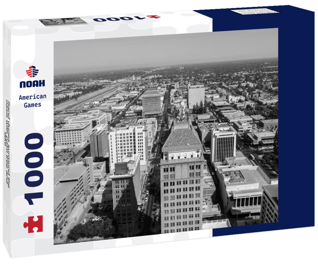 Noah Jigsaw Puzzle Sand dunes surround the oasis with palm tree and lake - Sahara, Morocco in black white 1000 pieces