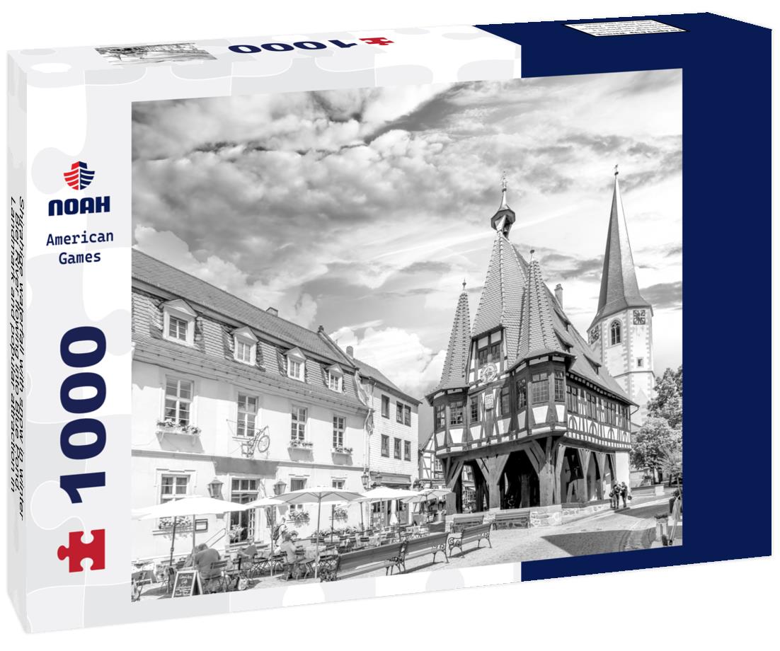 Noah Jigsaw Puzzle Shirahige waterfall with snow in winter, Biei River flowing into Blue Pond. Landmark and popular attraction in Hokkaido, Japan in black white 1000 pieces