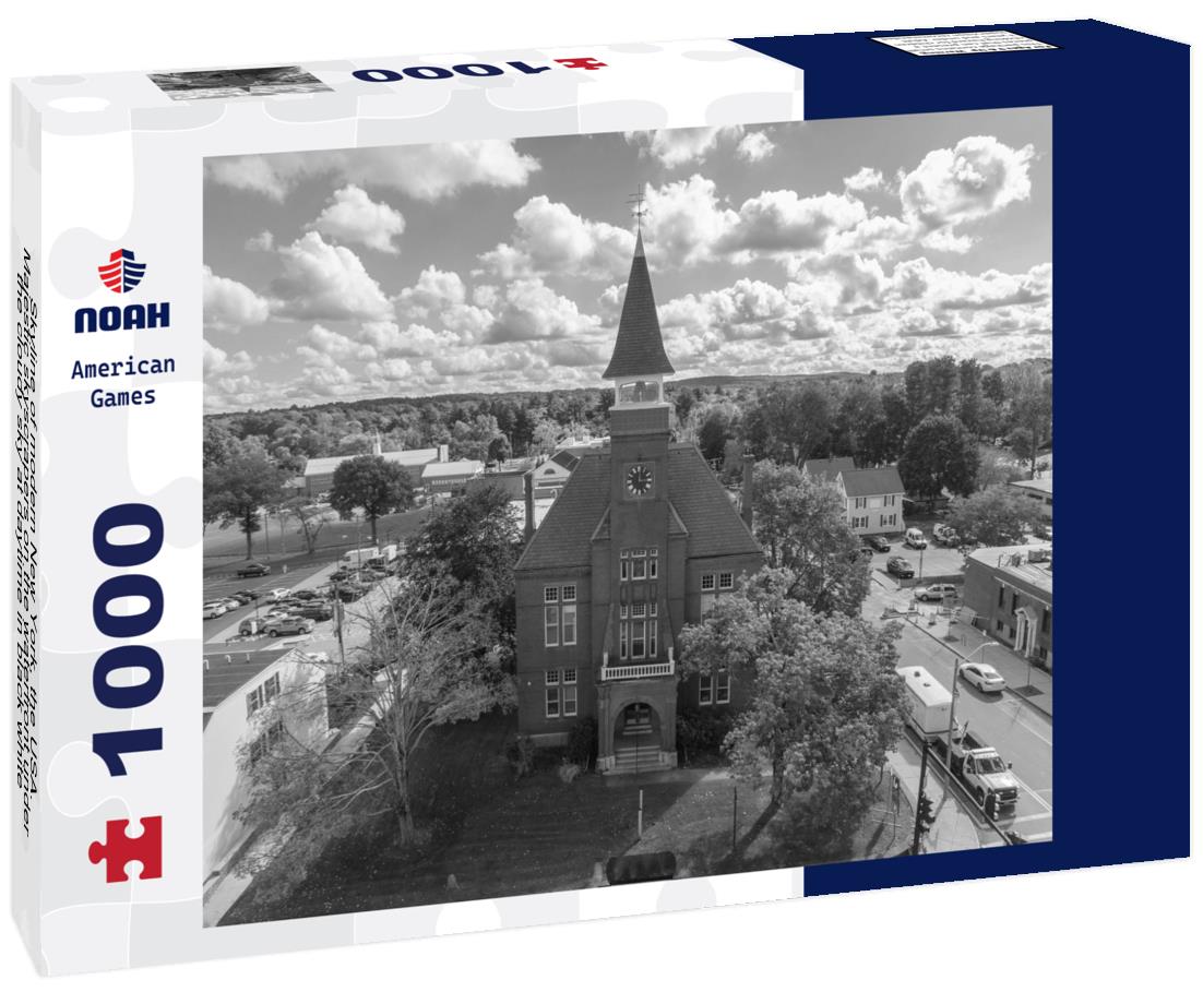 Noah Jigsaw Puzzle Skyline of modern New York, the USA. Majestic skyscrapers on the waterfront under the cloudy sky at daytime in black white 1000 pieces
