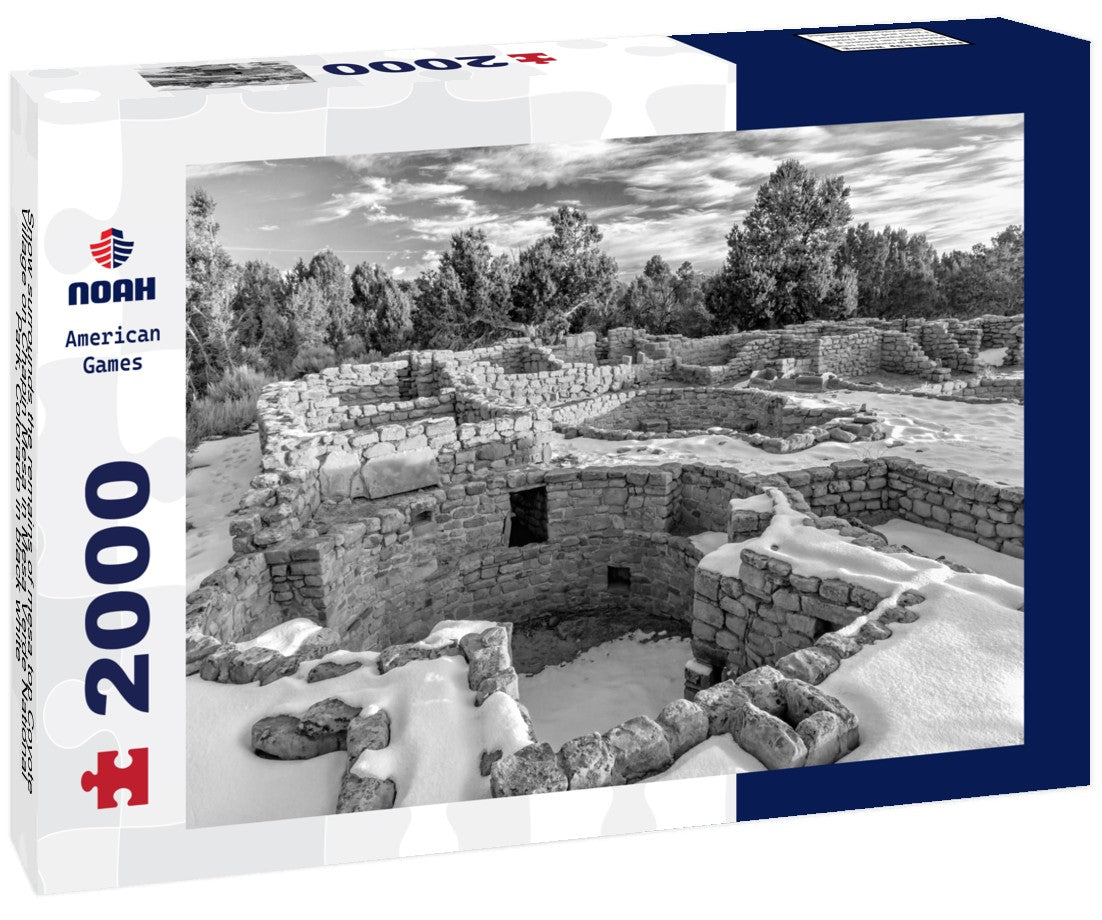 Noah Jigsaw Puzzle Snow surrounds the remains of mesa top Coyote Village on Chapin Mesa in Mesa Verde National Park, Colorado in black white 2000 pieces