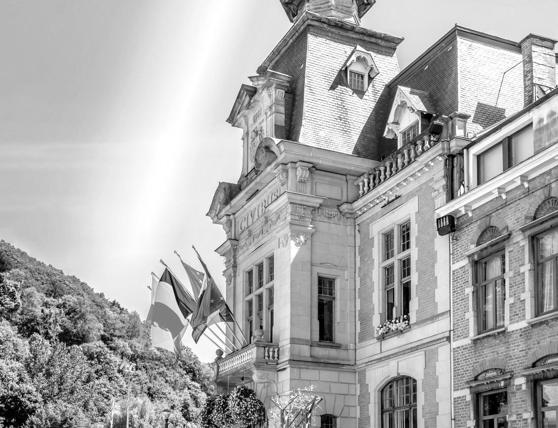 Noah Jigsaw Puzzle Spectacular sunny view on fortified church and street with old buildings in Saschiz, Transylvania, Romania. UNESCO World Heritage Site in black white 1000 pieces