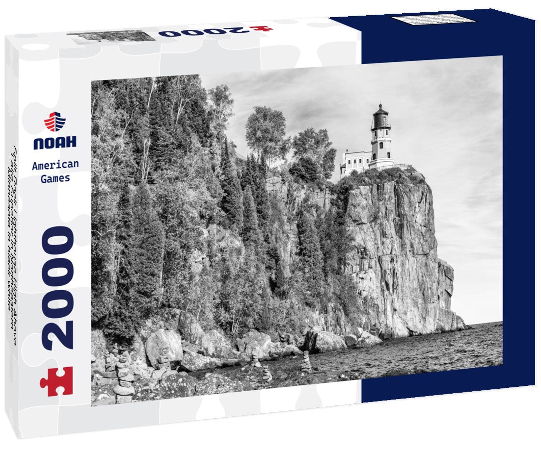 Noah Jigsaw Puzzle Split Rock Lighthouse High Above Lake Superior in Northeastern Minnesota in black white 2000 pieces