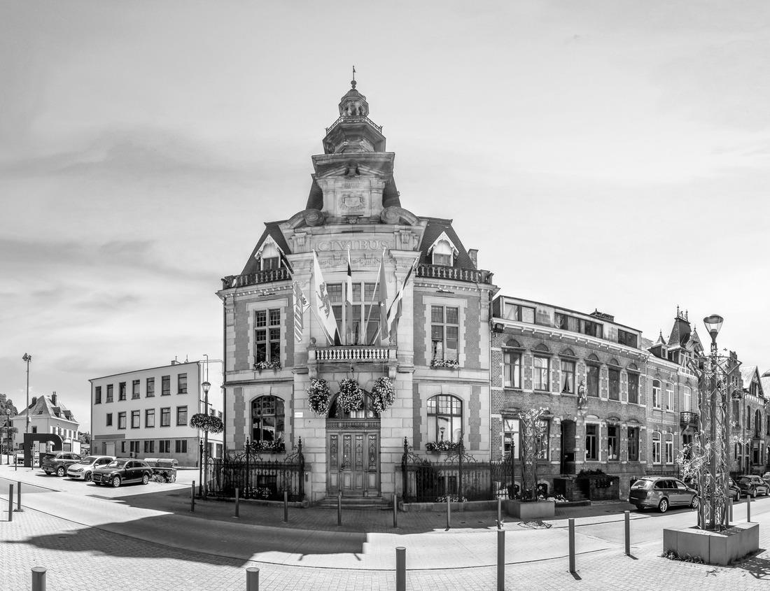 Noah Jigsaw Puzzle street in the historic town of Martinsburg, West Virginia. Ancient architecture of small multi-colored buildings in the colonial style in black white 1000 pieces