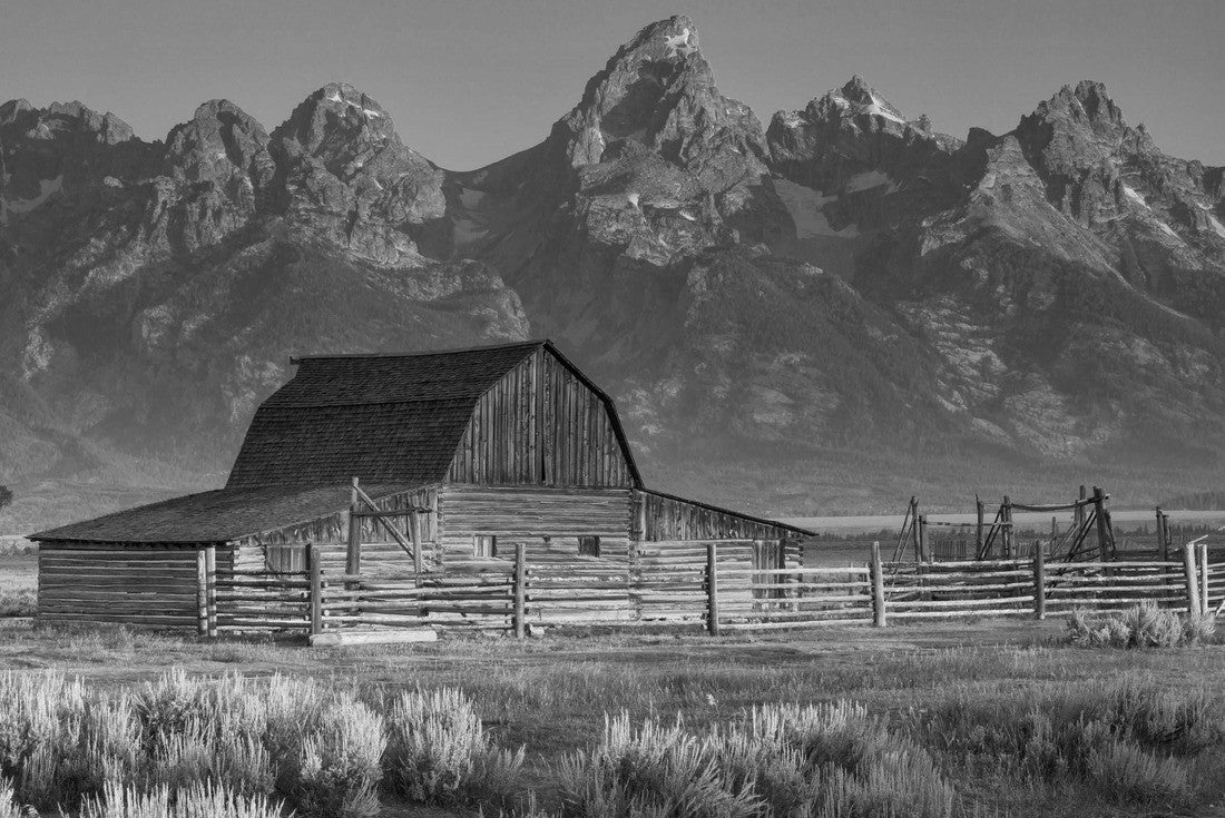 Noah Jigsaw Puzzle Sunrise of historic Moulton Barn in the Grand Teton National Park, Wyoming, USA in black white 2000 pieces