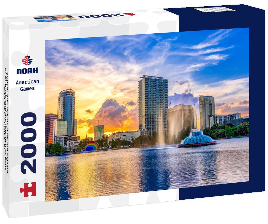 Noah Jigsaw Puzzle Sunset and clouds over the skyline of Orlando and the fountain at Lake Eola Park, Orlando FL 2000 pieces