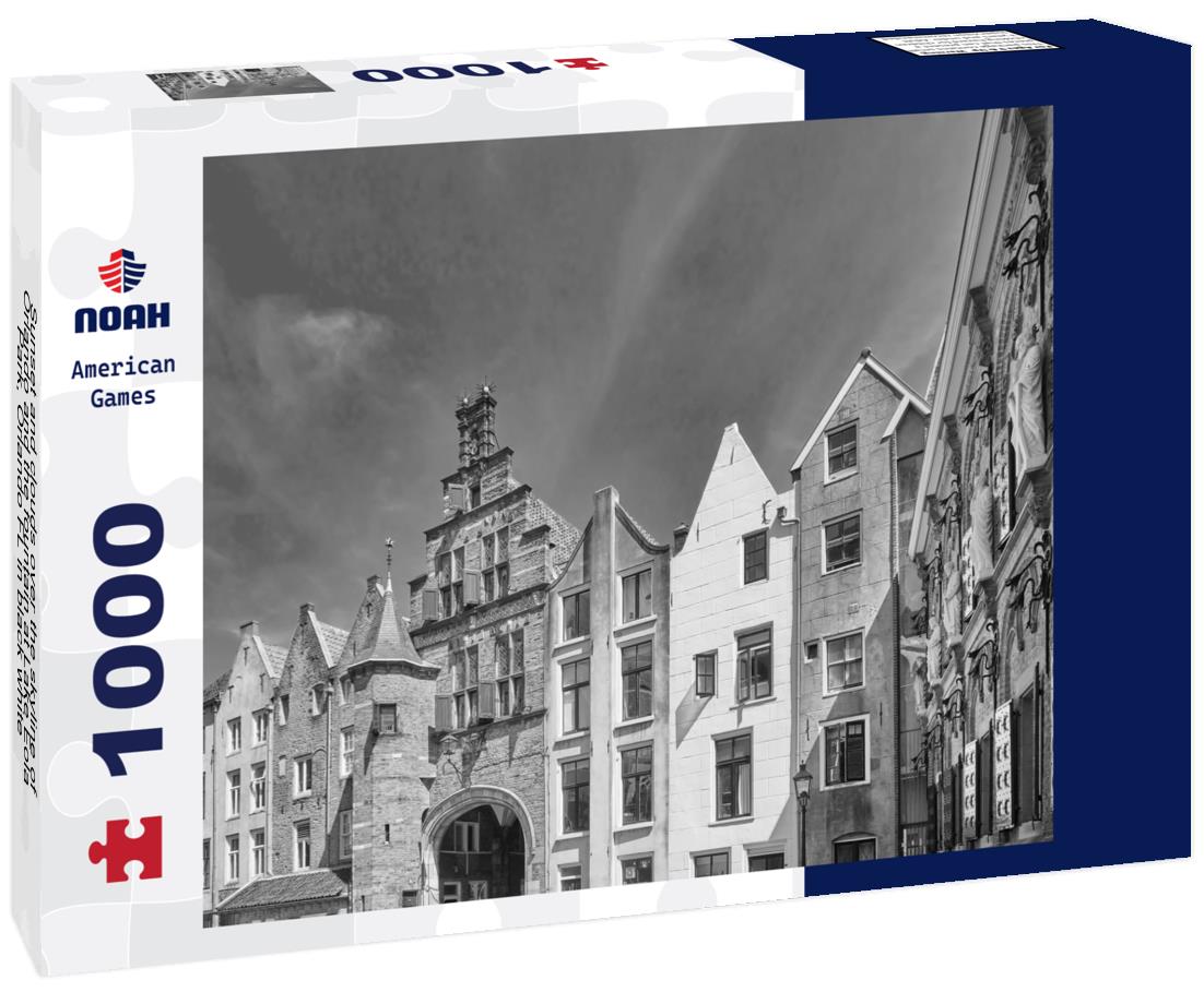 Noah Jigsaw Puzzle Sunset and clouds over the skyline of Orlando and the fountain at Lake Eola Park, Orlando FL in black white 1000 pieces