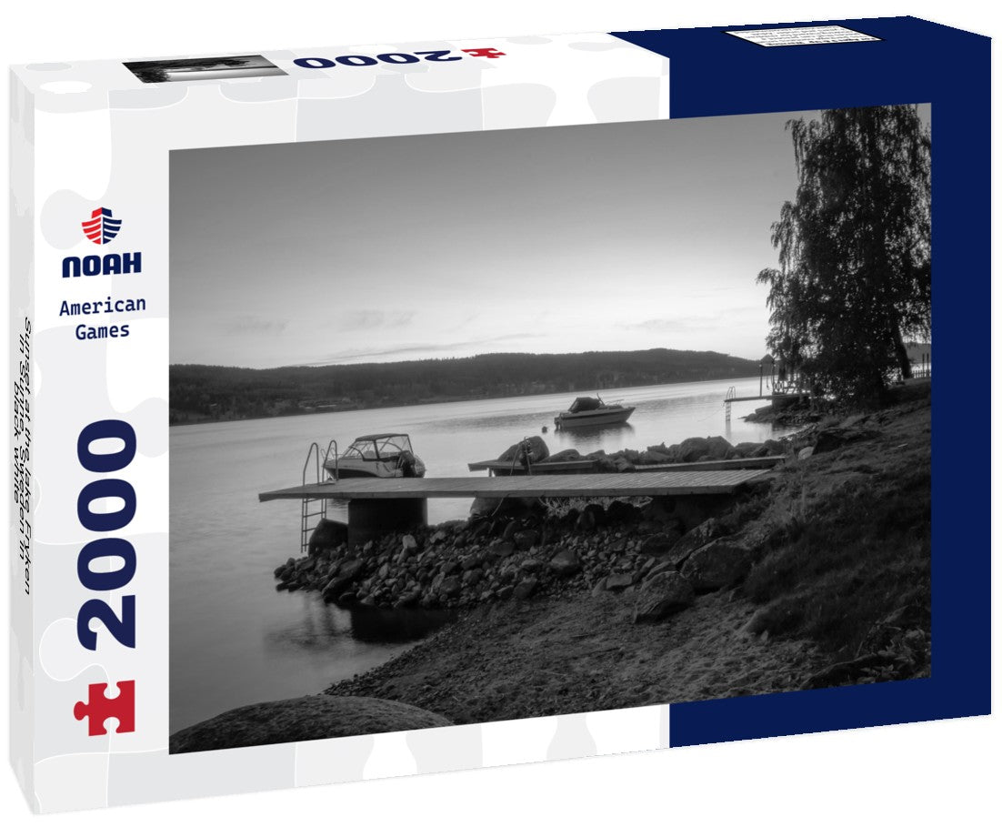 Noah Jigsaw Puzzle Sunset at the lake Fryken in Sunne, Sweden in black white 2000 pieces