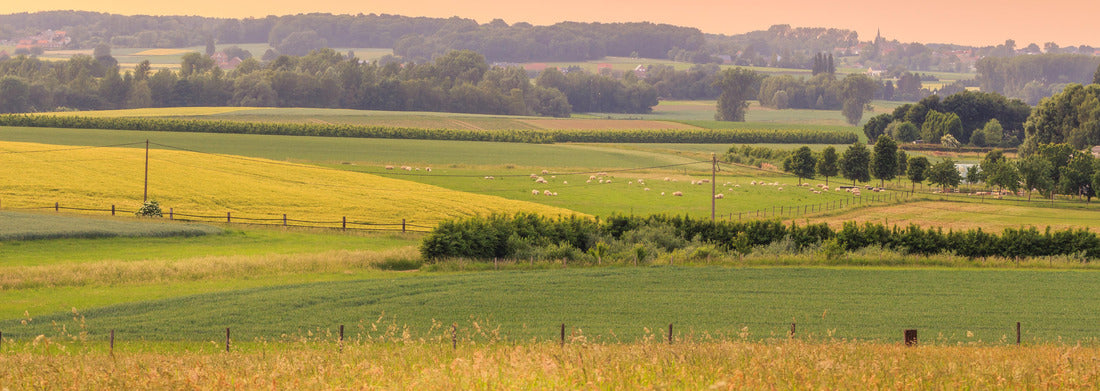 Noah Jigsaw Puzzle Sunset over a green landscape with sheep and a small village in spring. Tienen, Flanders Belgium, Panorama Panorama 1000 Pieces