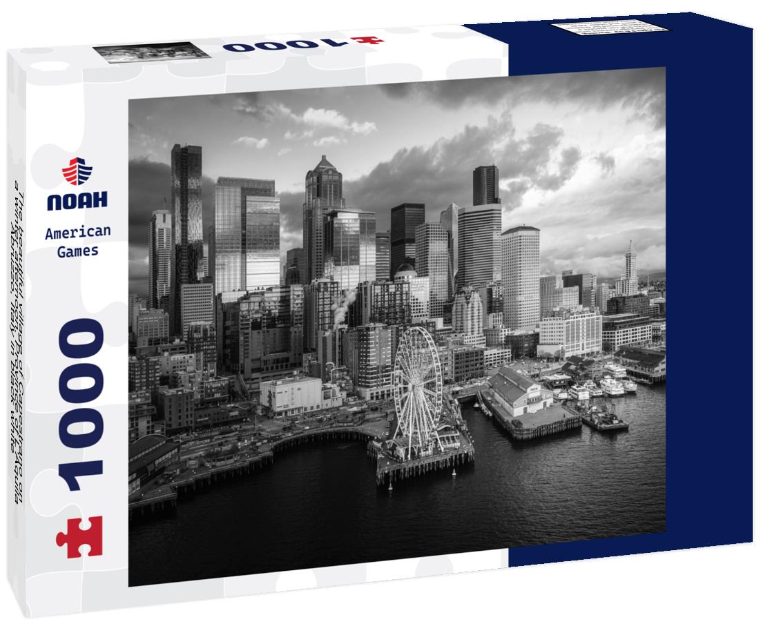 Noah Jigsaw Puzzle The beautiful village of Capestrano on a winter afternoon, Province of L'Aquila, Abruzzo, Italy in black white 1000 pieces
