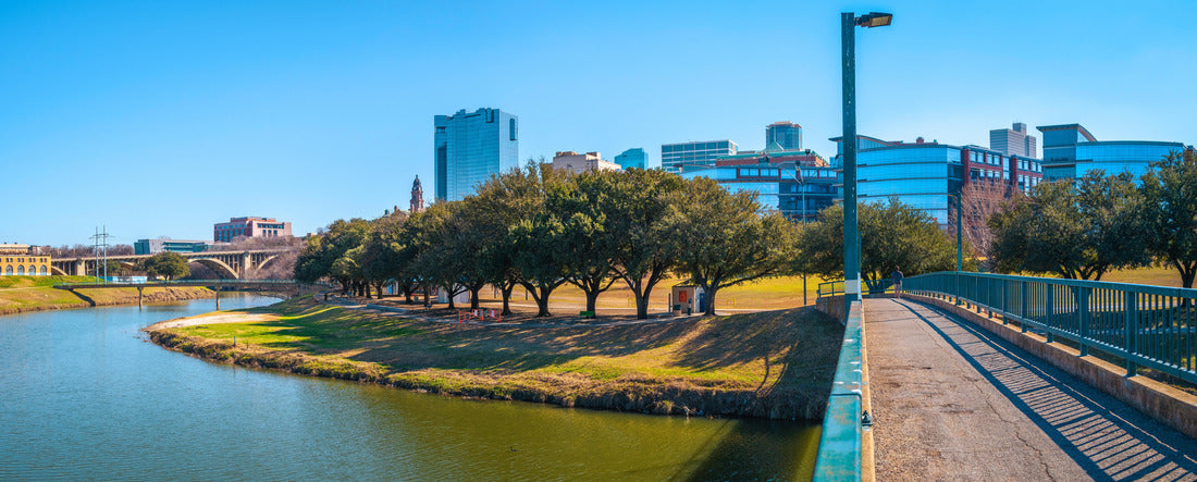 Noah Jigsaw Puzzle The panoramic skyline of Fort Worth, buildings and walking trails across the Trinity River Bridge, a city with open space in Texas panorama 2000 pieces