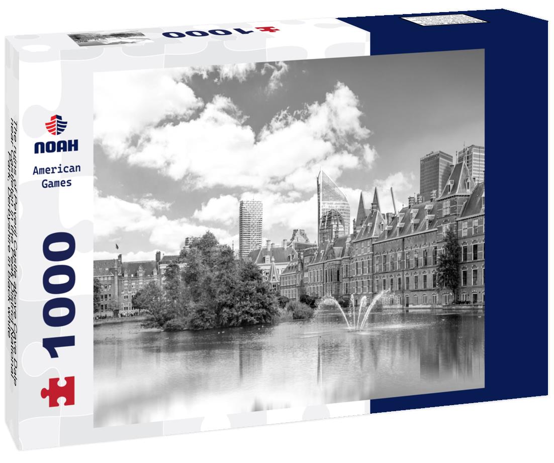The ruins of Peveril Castle above Cave Dale near Castleton in the Peak District National Park, Derbyshire 1000pc PuzzleBlack and White