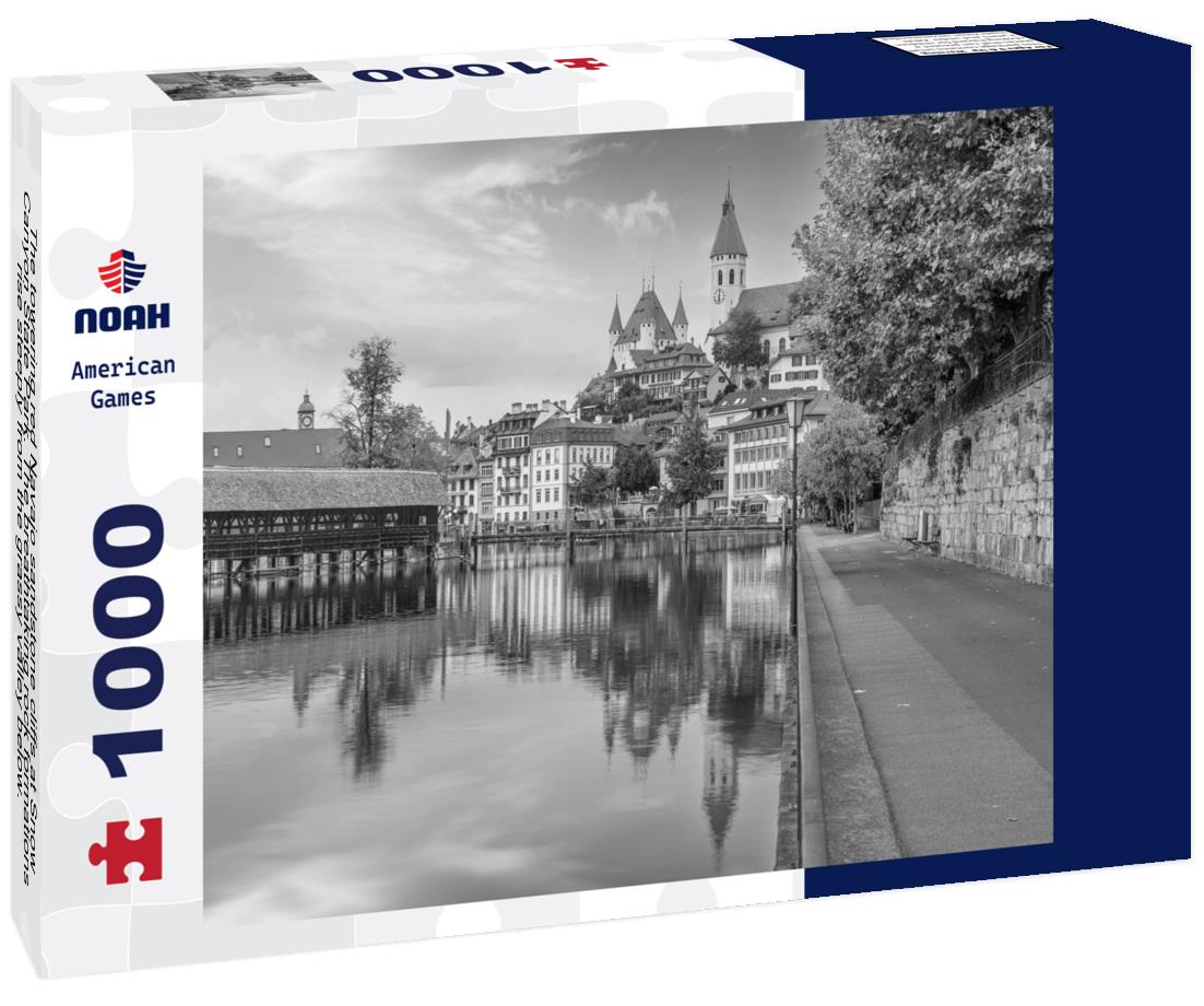 Noah Jigsaw Puzzle The towering red Navajo sandstone cliffs at Snow Canyon State Park. The breathtaking rock formations rise steeply from the grassy valley below. Taken in the early morning light - St George, Utah, USA in black white 1000 pieces
