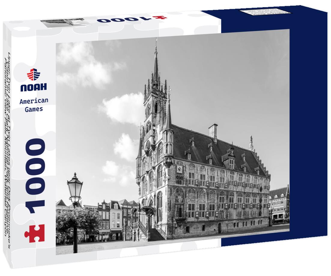 Noah Jigsaw Puzzle Upper Twin Lake at Twin Lakes near Dick Proenneke's Cabin in Lake Clark National Park and Preserve. Panoramic view Falls Mountain, Waterfall Canyon, Allen Mountain reflect in turquoise, glacial water in black white 1000 pieces