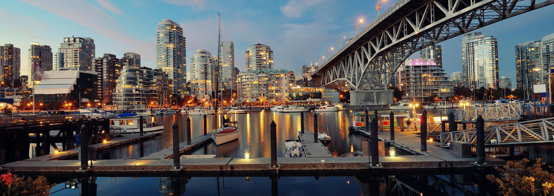 Noah Jigsaw Puzzle Vancouver False Creek at night with bridge and boat panorama 1000 pieces