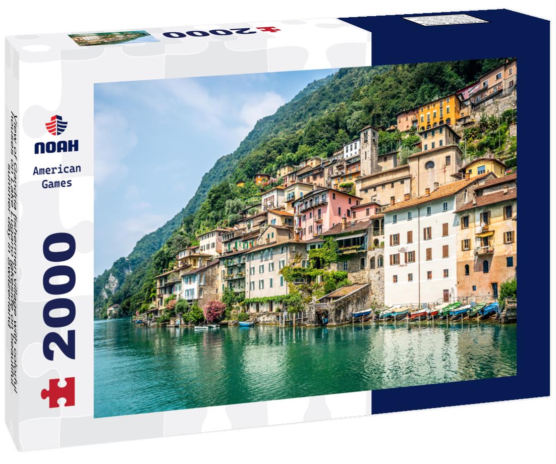 Noah Jigsaw Puzzle View of Gandria fishermen village with colorful houses on Lake Lugano lakeside on beautiful summer day in Switzerland 2000 pieces