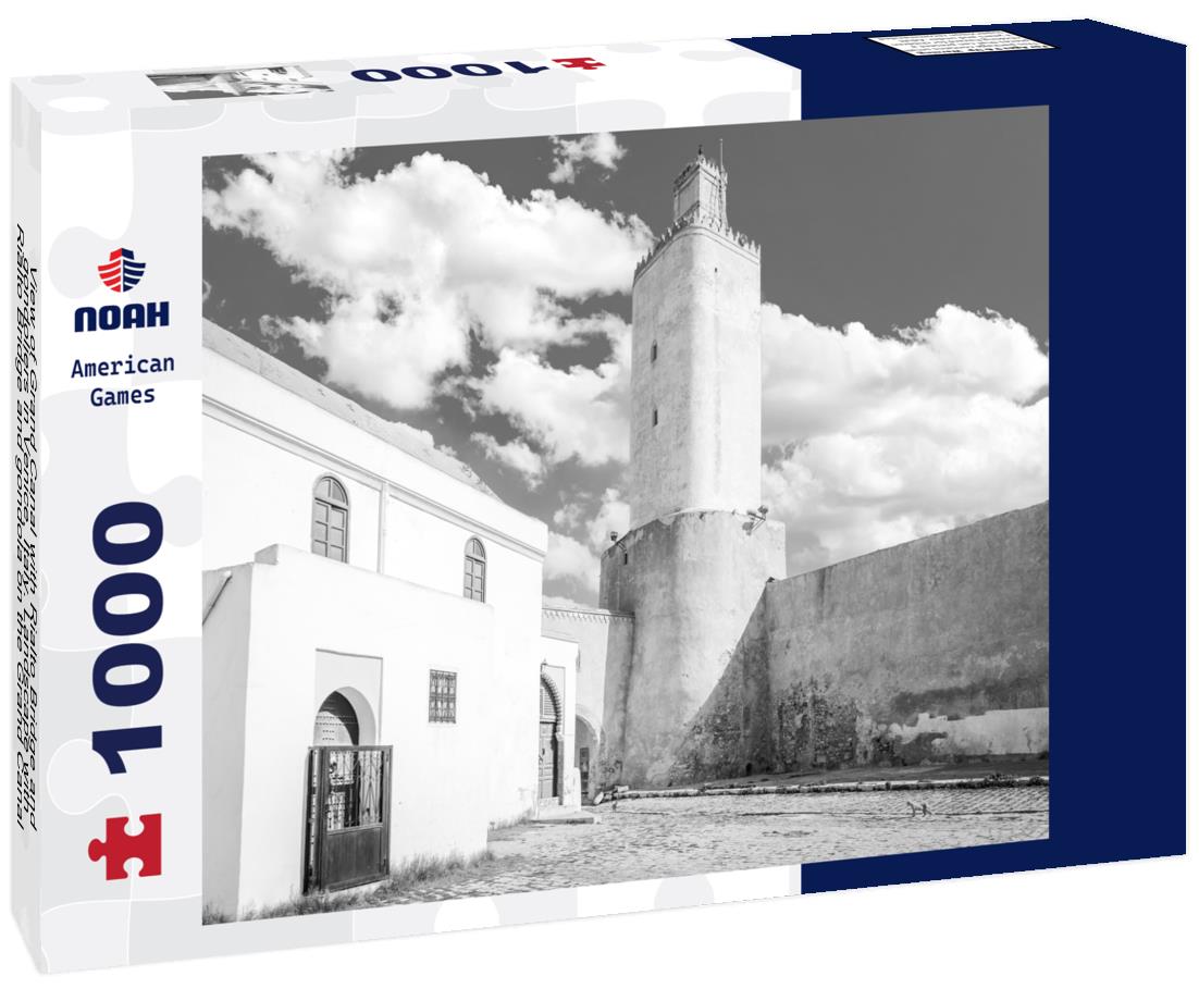 Noah Jigsaw Puzzle View of Grand Canal with Rialto Bridge and gondoliers in Venice, Italy. Landscape with Rialto Bridge and gondola on the Grand Canal in Venice, Italy in black white 1000 pieces