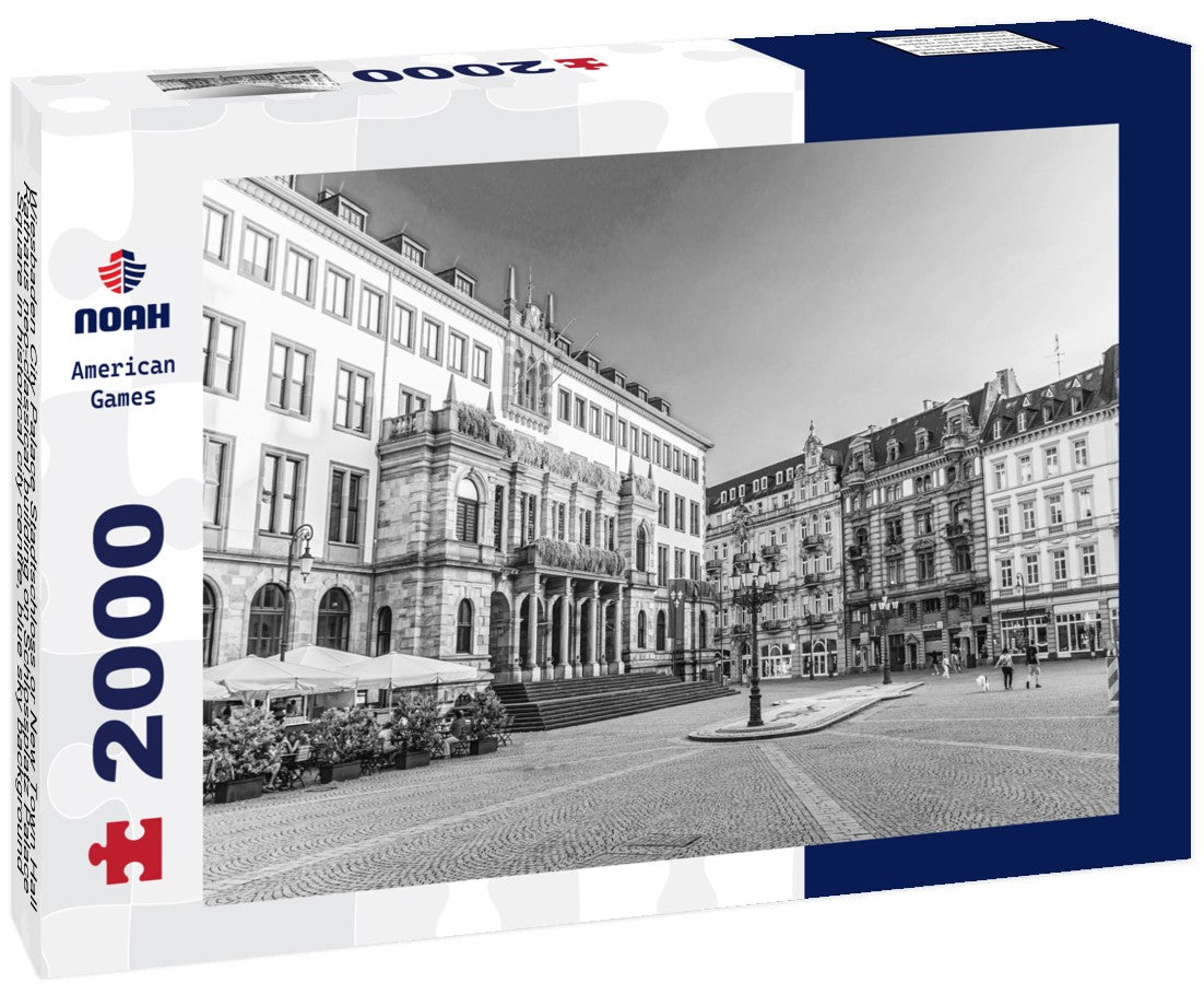Noah Jigsaw Puzzle Wiesbaden City Palace Stadtschloss or New Town Hall Rathaus neo-classical building on Schlossplatz Palace Square in historical city centre, blue sky background, State of Hessen, Germany in black white 2000 pieces