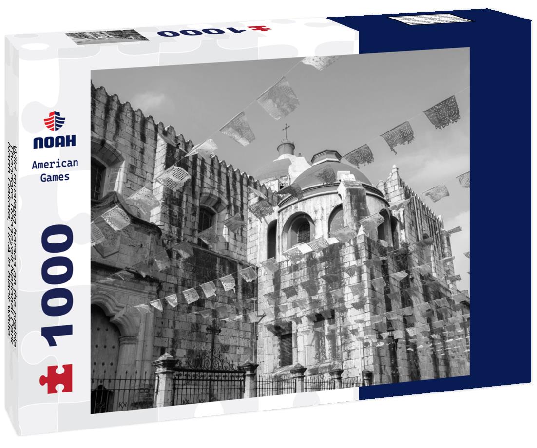 Noah Jigsaw Puzzle Wild mustang horses on the prairie, Theodore Roosevelt National Park, North Dakota, USA in black white 1000 pieces