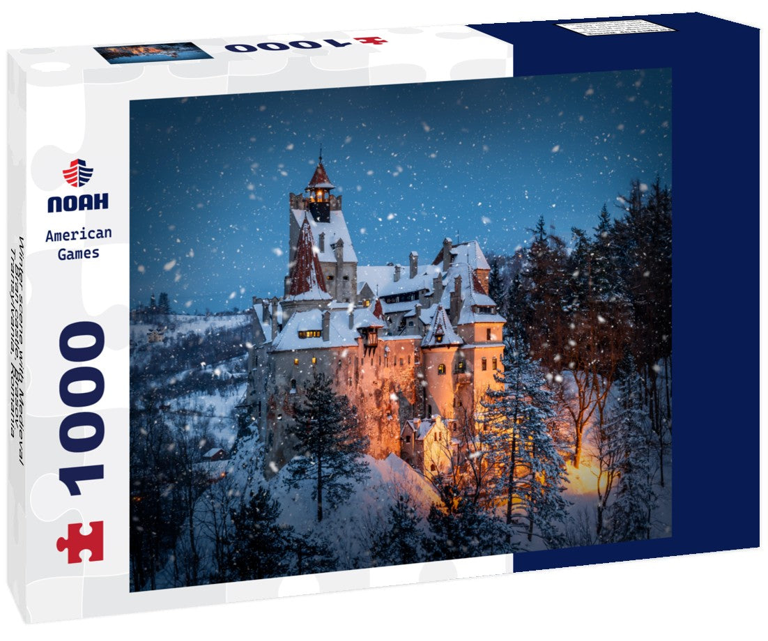 Winter scene with Medieval Bran castle, Brasov, Transylvania, Romania 1000pc Puzzle