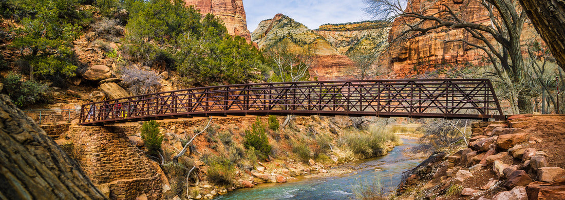 Noah Jigsaw Puzzle Wooden bridge and scenery in Zion National Park during winter panorama 1000 pieces