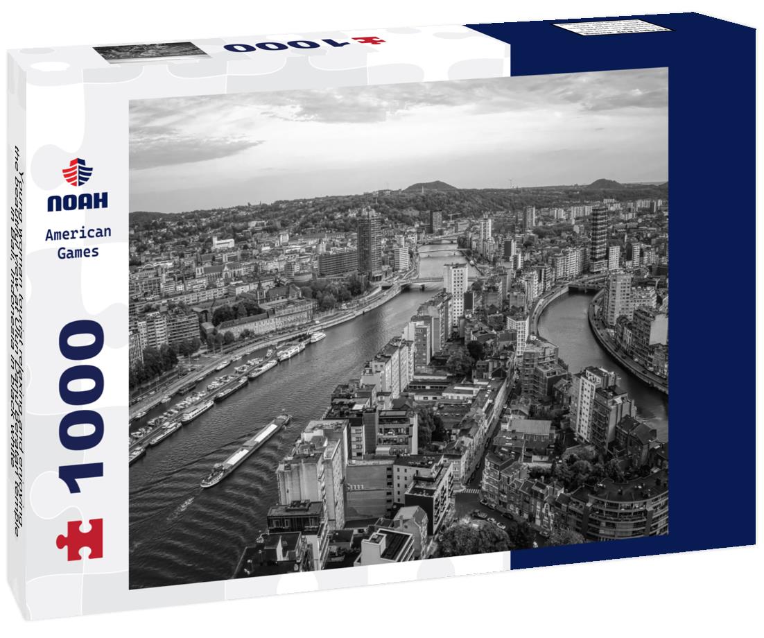 Noah Jigsaw Puzzle Young woman tourist relaxing and enjoying the beautiful view at Ulun Danu Beratan temple in Bali, Indonesia in black white 1000 pieces